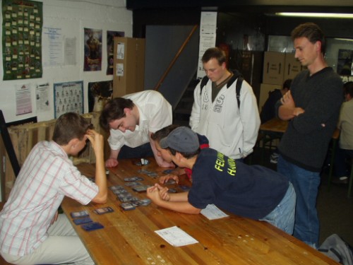 Day 7 – Großer Bahnhof in HannoverAm Freitag stand uns als einziger Stopp das Fantasy-In in Hannover bevor, womit wir quasi ein Heimspiel hinlegten, veranstalten wir doch dort auch monatliche Turniere. Somit kannten wir natürlich schon einige der Spieler vor Ort und starteten die Tour erst um 14:30, da man uns um einen Beginn gegen 15 Uhr aufgrund von Abreit etc. gebeten hatte. Dass dies nicht für jeden galt, zeigte sich uns, als wir auf eine vollzählige Mannschaft von Spielern trafen, die wir durch die erste Demo sogar mit einem weiteren Spieler auf acht Teilnehmer bringen konnten.